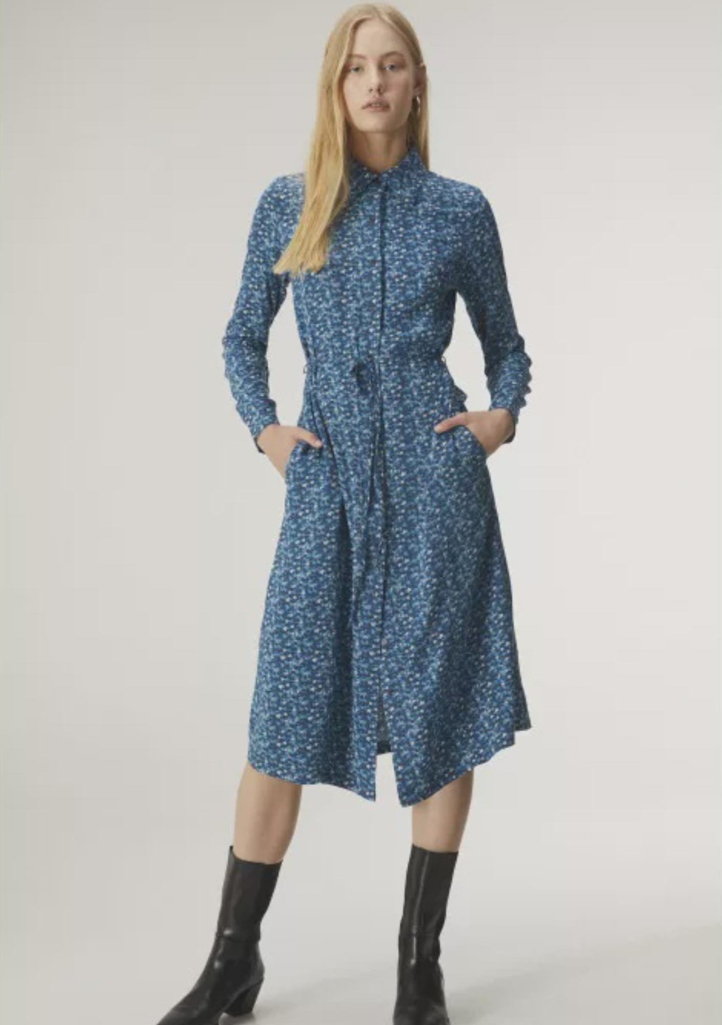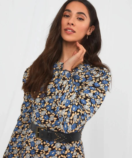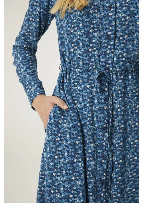 CLEARANCE Midi Shirt Dress with Belt - Blue Ditsy Floral Print