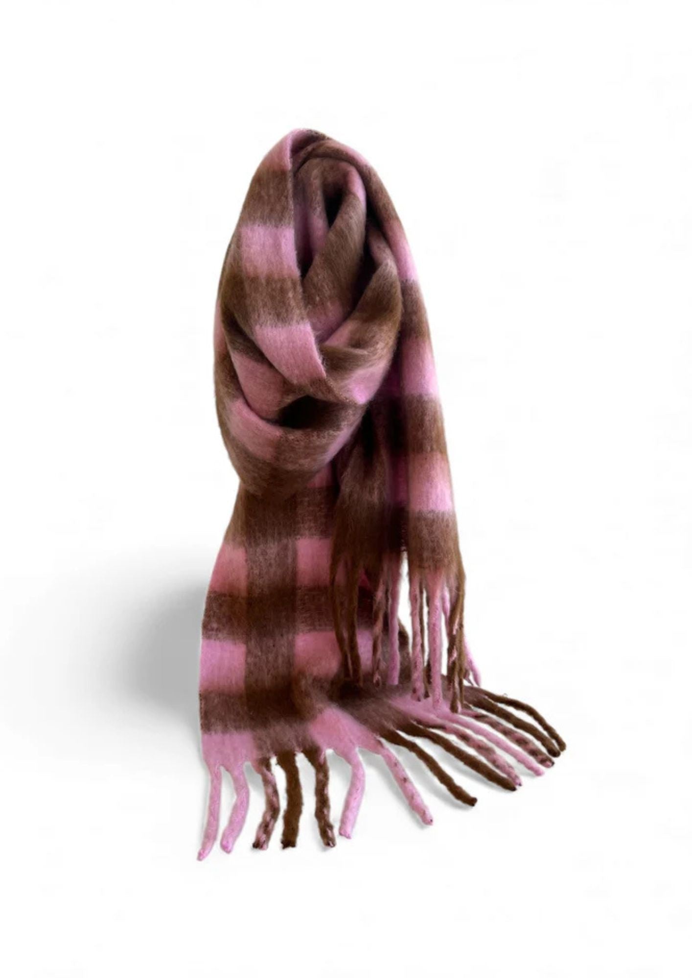 Checkers Scarf - Baby Pink / Brown